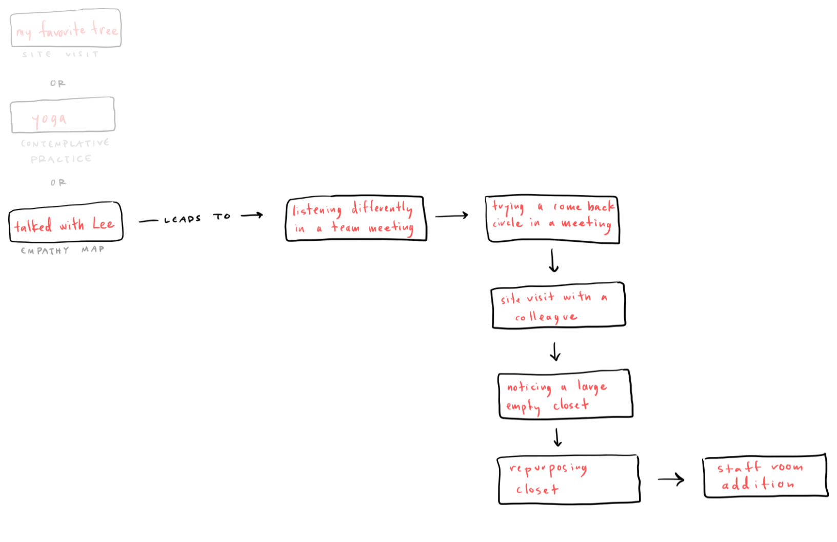 To make change, we need to imagine it. One way to do this is to mind map the chain of events that occur so that something that starts small leads to substantial shifts in your organization (or life). In this exercise, you will imagine what a single activity in this guide leads to next, and next, and next.
