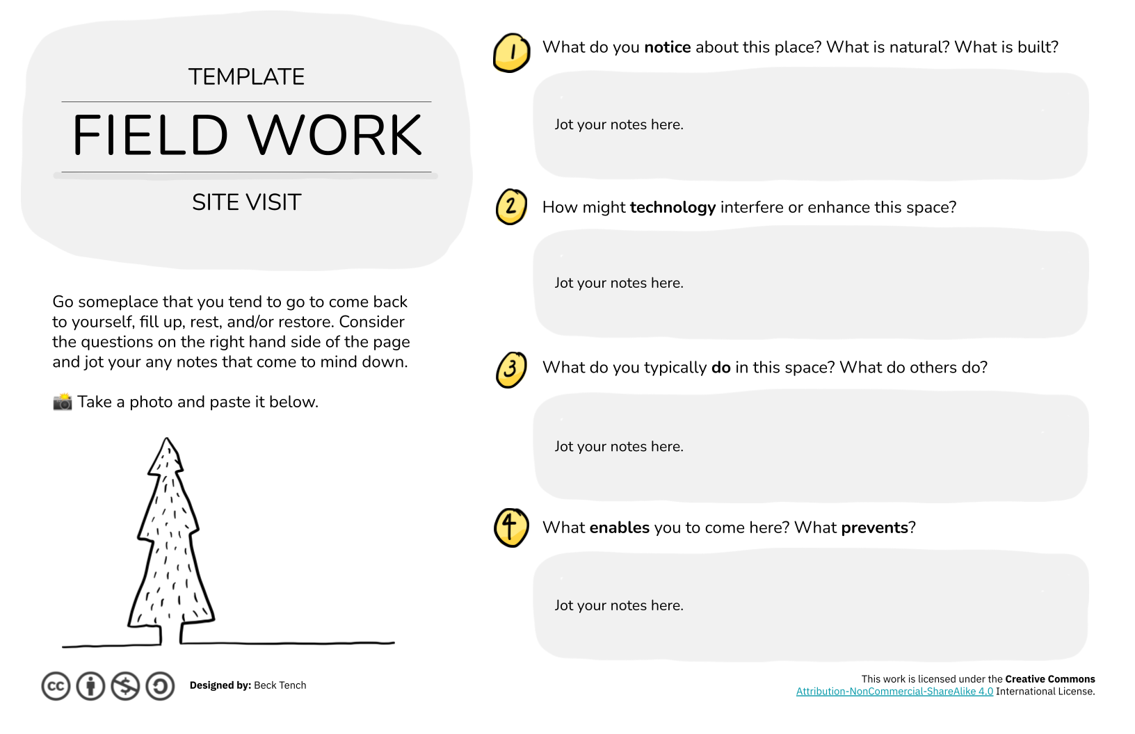 Spend about 20 minutes there. Experience the place and consider the questions to the right or on the template to the left.