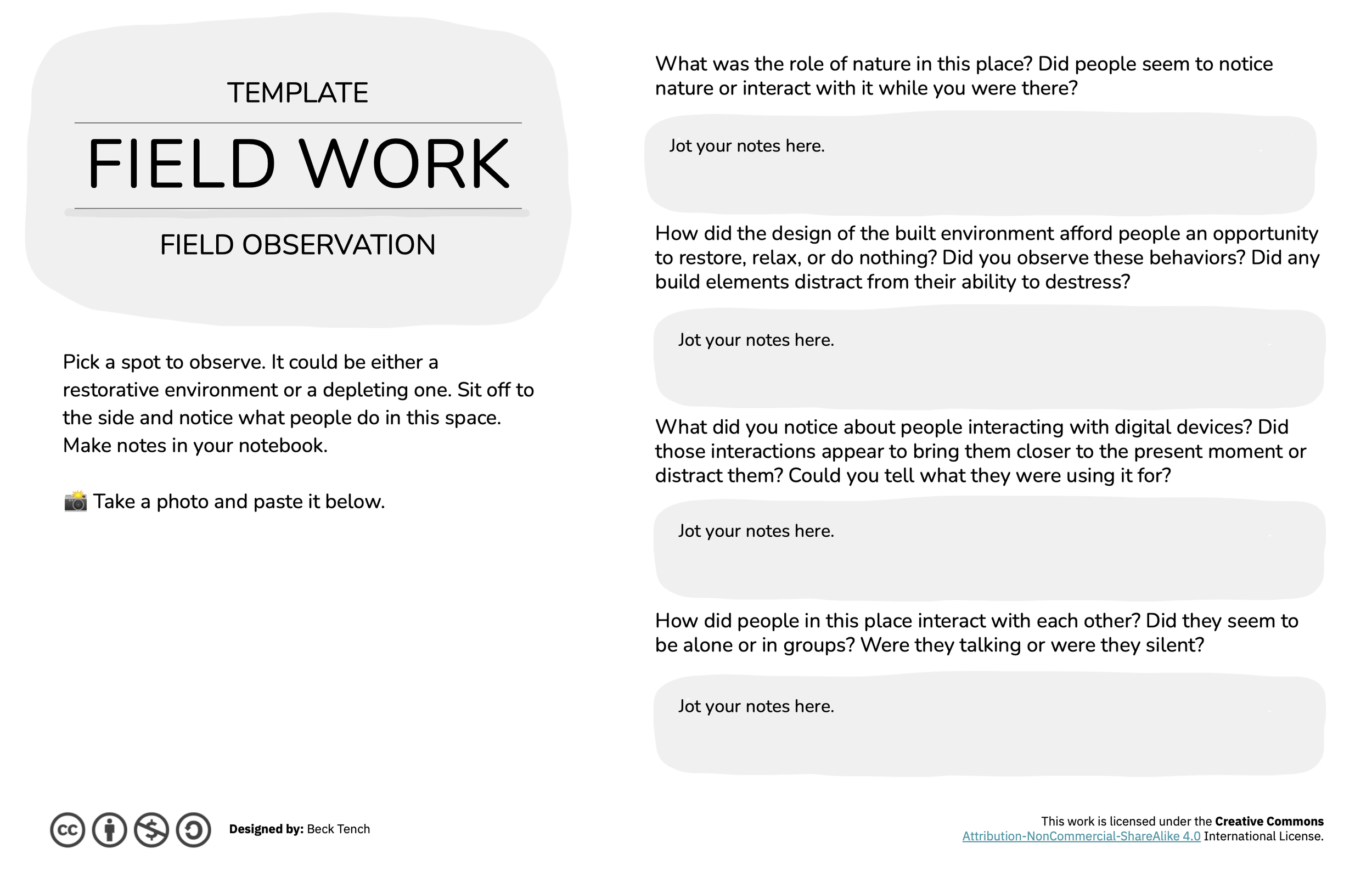 Pick a spot to observe. It could be either a restorative environment or a depleting one.